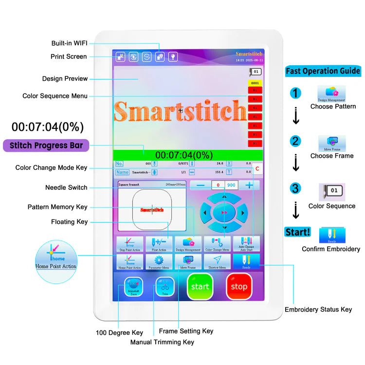 ★ Completed Training and Technical Support: Fear not! Smartstitch provides operation manuals and video trainings to ensure you can get started with our commercial embroidery machine soon. After the purchase, please contact us immediately when you receive the machine, our experienced engineers will help you to use the machine on line, and local technical support is available also.